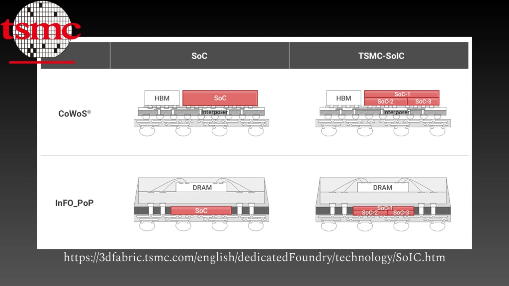 TSMC said its SoIC (System on Integrated Circuit) 3D chiplet-stacking process will come to the A14 node in 2029. COUPE (Compact Universal Photonic Engine) on substrate is also beginning this year, bringing co-packaged optics to AI data center networking.